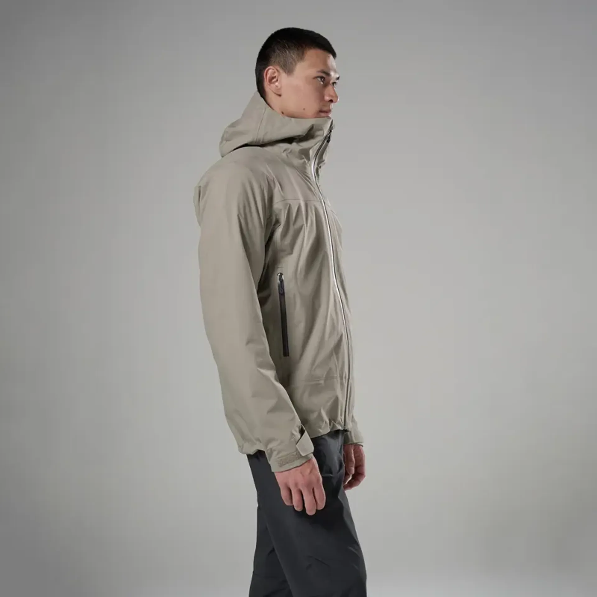 40D ripstop woven outer 3 layer laminate. Offering a lightweight, waterproof, and highly breathable fabric with non fluorocarbon water repellent (20,000mm hydrostatic head, 20,000g/m²/24hrs MVTR)